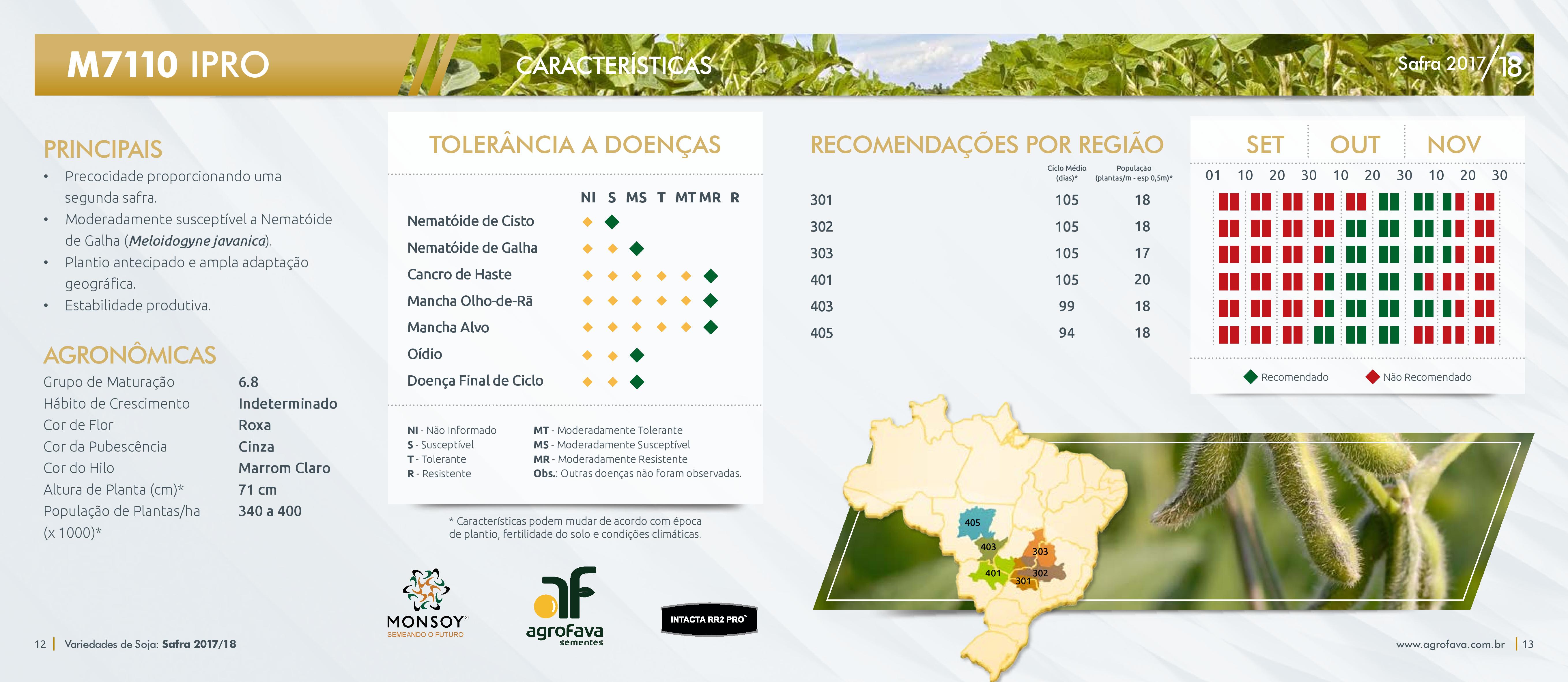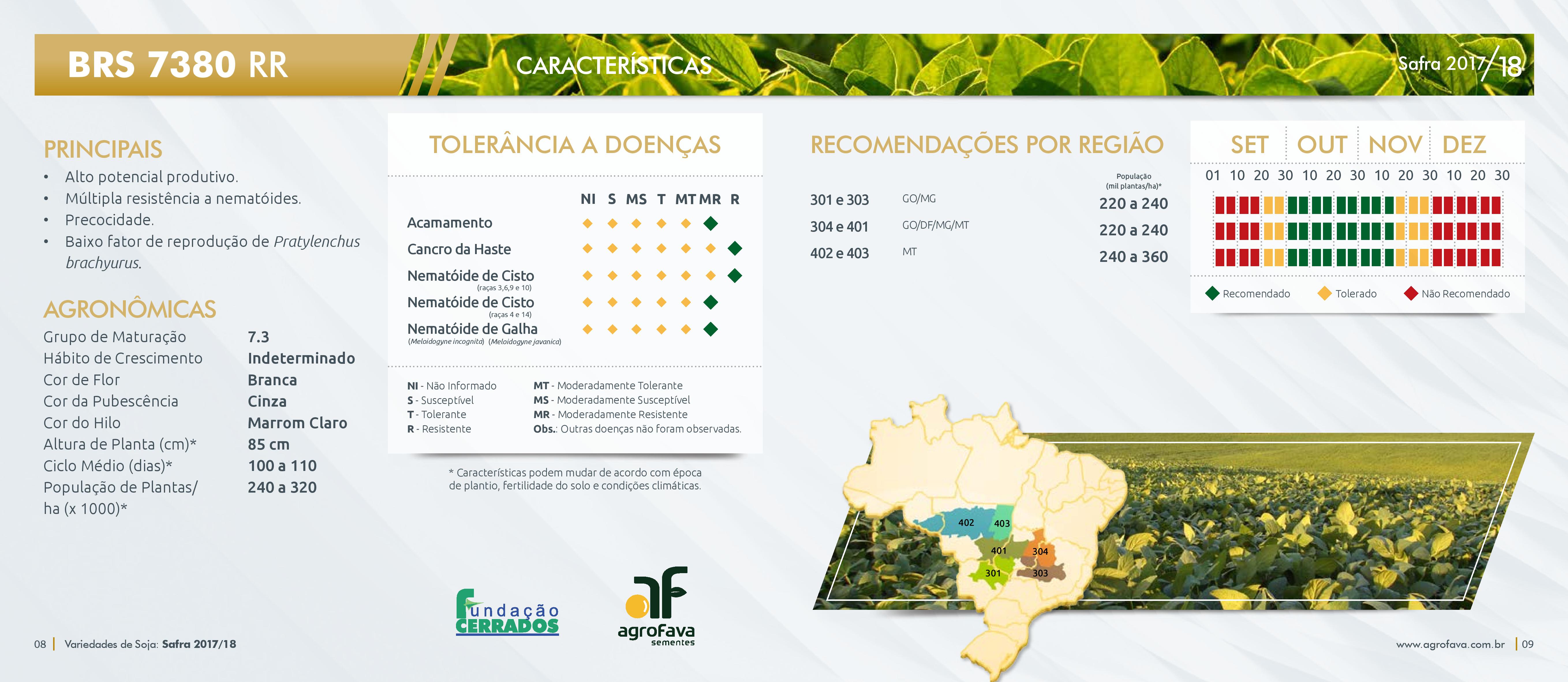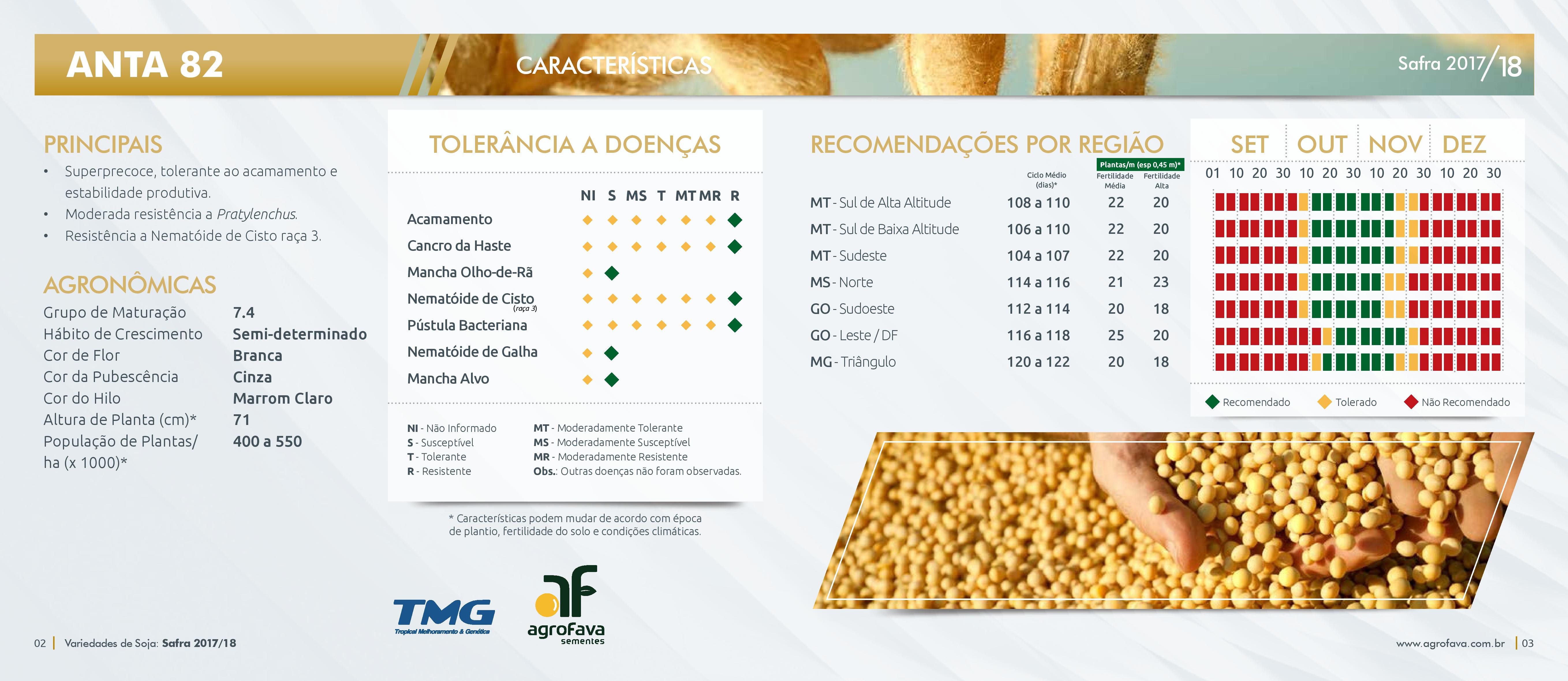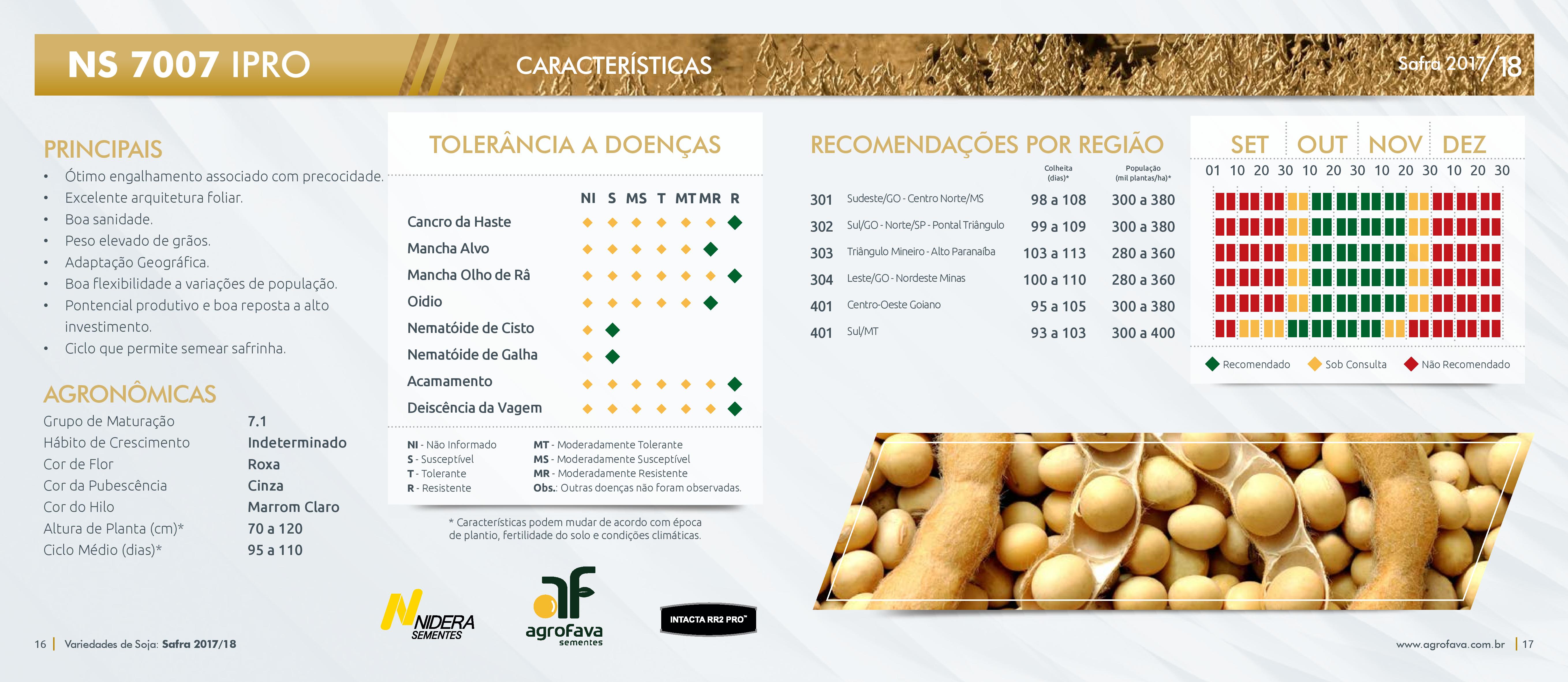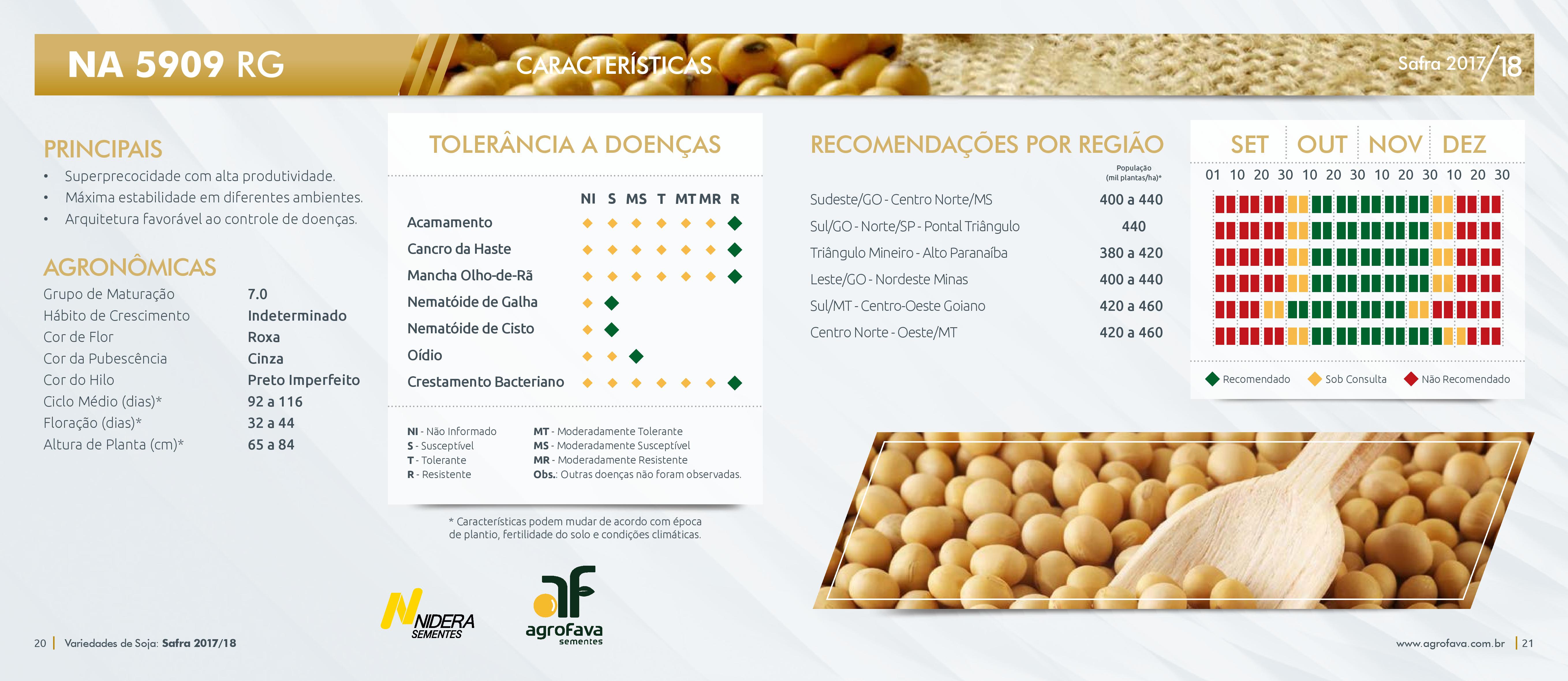 Com vários anos de mercado, a Agrofava Sementes é referência em produção de sementes de soja com alto padrão de qualidade. A empresa utiliza tecnologia de ponta e possui moderna estrutura de beneficiamento de sementes. Atua em parceria com os mais renomados fornecedores de germoplasma, dispondo de um excelente portfólio e oferecendo o que há de melhor para seus clientes.